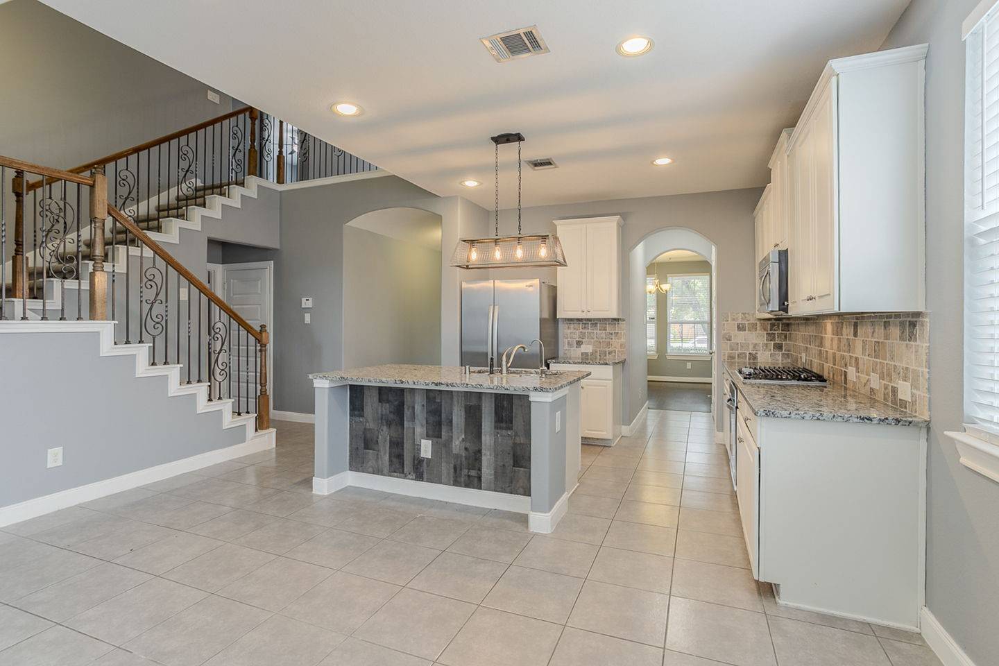 Stunning, move-in ready 2-story home featuring 4 bedrooms, 2.5 bathrooms, and a 2-car garage. The upgraded kitchen boasts a large island, stainless steel appliances, a bright breakfast area with a large window, a pantry and formal dining room. The dining room opens to the living room, which features high ceilings, abundant natural light, a ceiling fan, and a cozy fireplace.